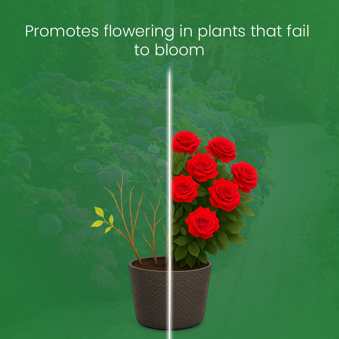Increases flower production significantly. Promotes flowering in plants that fail to bloom.